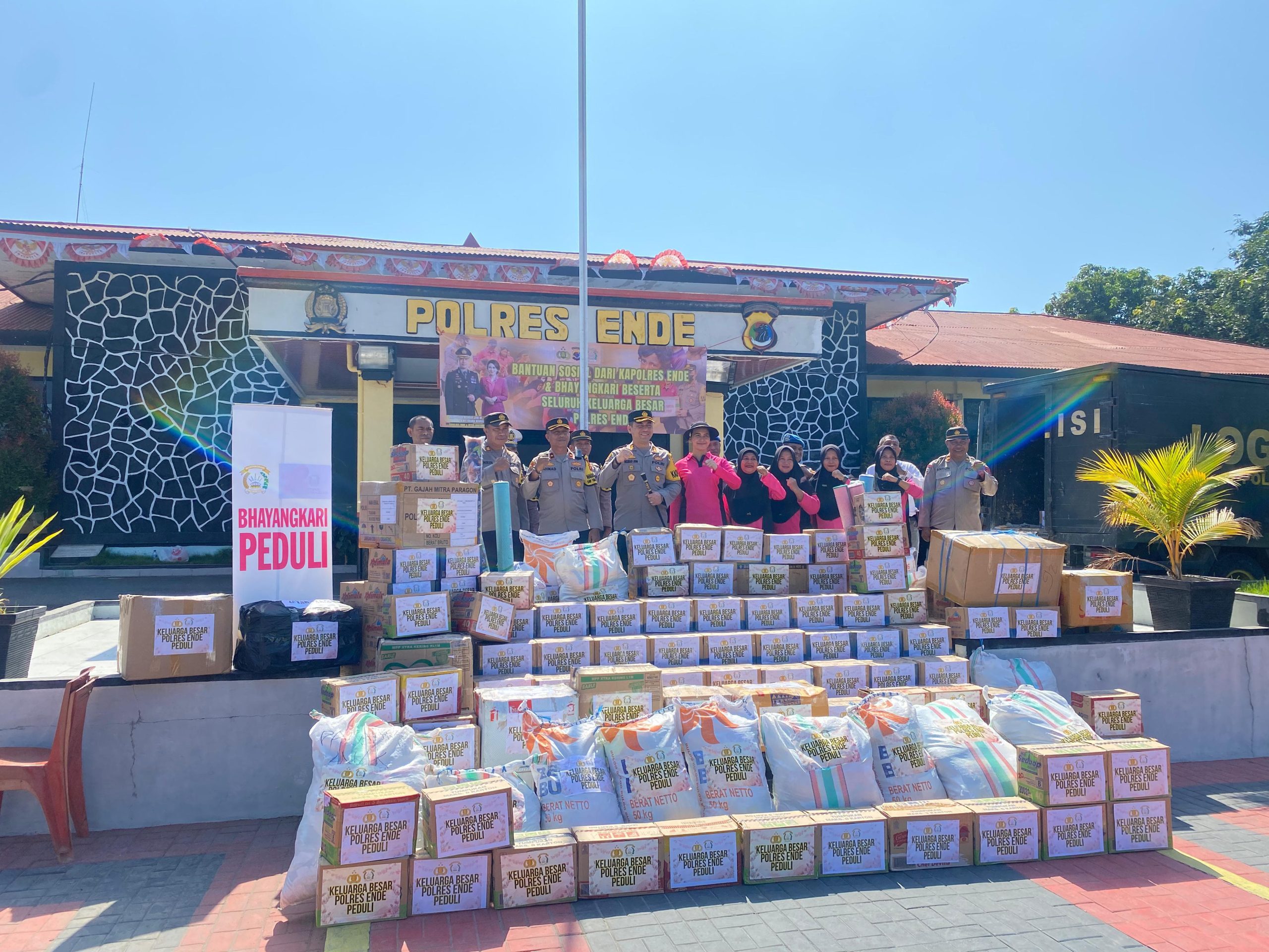 Kapolres Ende AKBP I Gede Ngurah Joni M., S.H., S.I.K., M.H sebelum melepas bantuan sosial kemanusian tersebut mengatakan Polres Ende bersama bhayangkari melakukan bakti sosial dengan memberikan bantuan kepada pengungsi yang kena dampak Erupsi gunung Lewotobi yang ada di Kabupaten Flores Timur.
